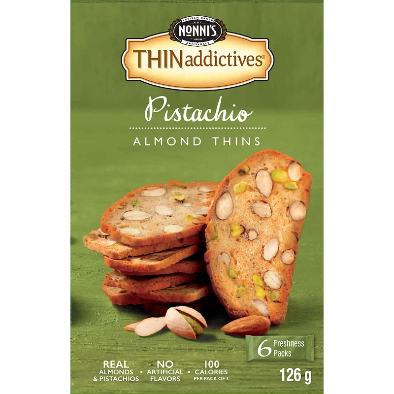 精選加州頂級杏仁,與美味開心果完美混合,經過兩次烘烤,製成薄脆餅乾。