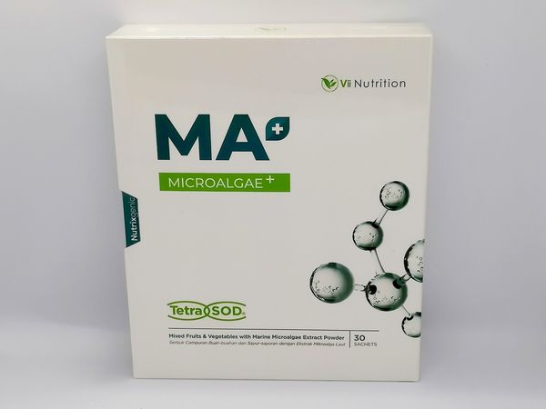 MA+ Microalgae+ (海洋微藻) , 高效抗氧化的功能性保健食品, 使用西班牙專利技術萃取,並在馬來西亞進行生產包裝。